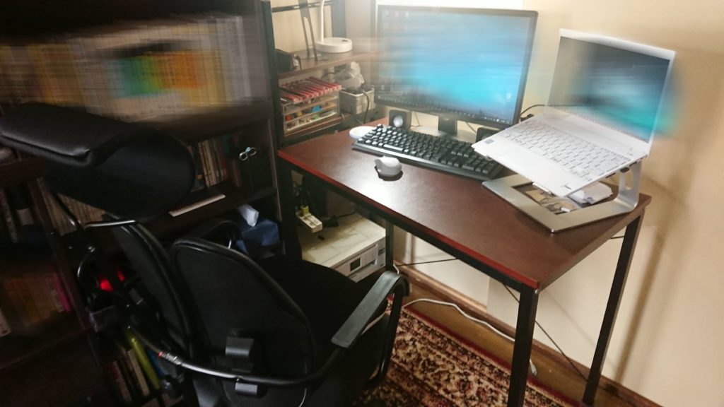 これはローデスクでもハイデスクでもいいのですが、私はハイデスクにしました。というのも実家では普段いわゆる学習机を使っていたからです。作業はこちらで行います。