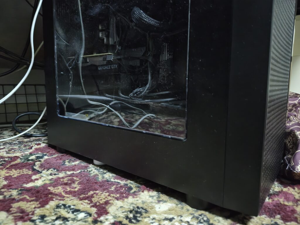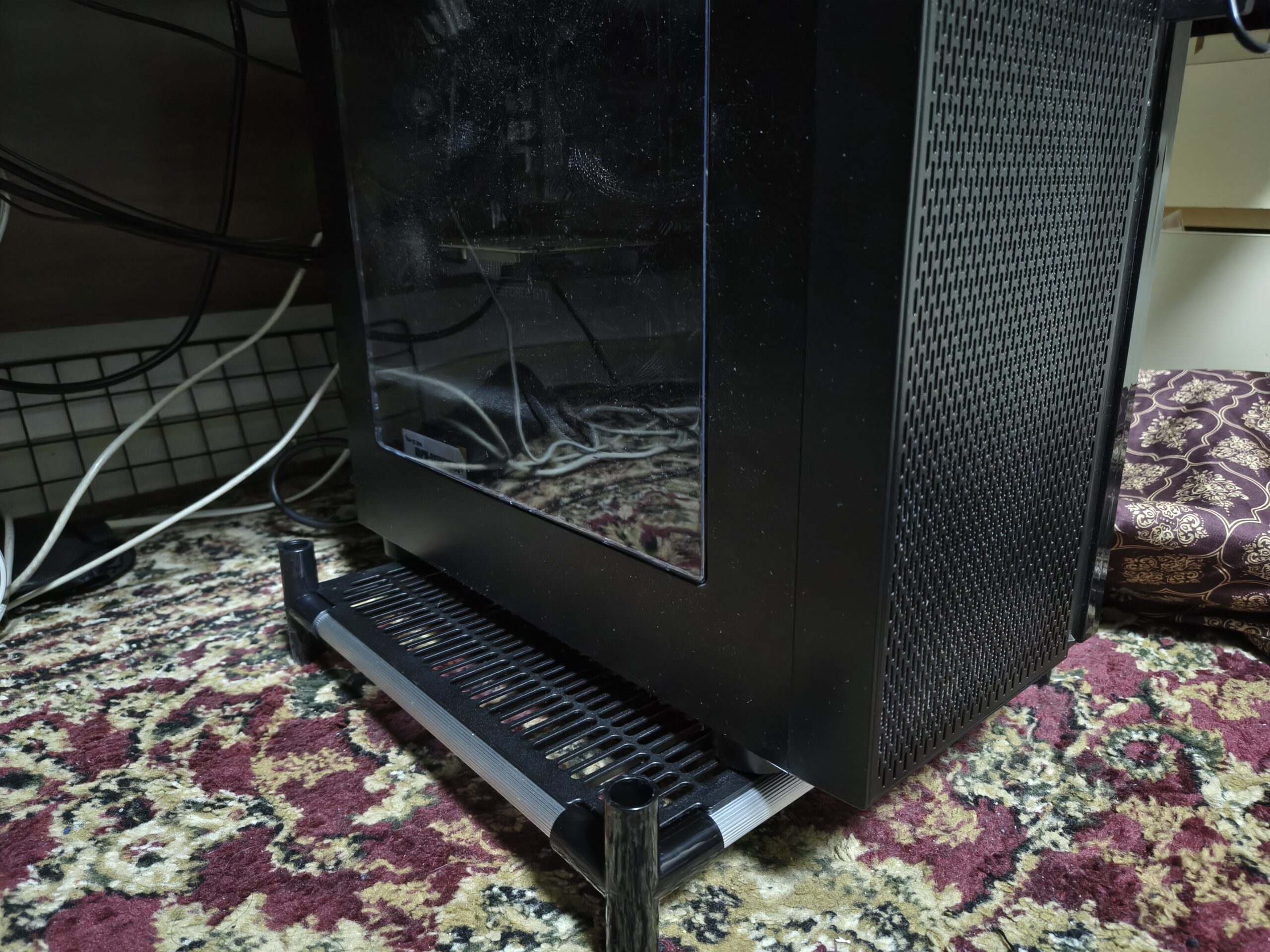 奥行きがやや足りませんでしたが、ちゃんとPCケースの足が乗っているのでいいでしょう。